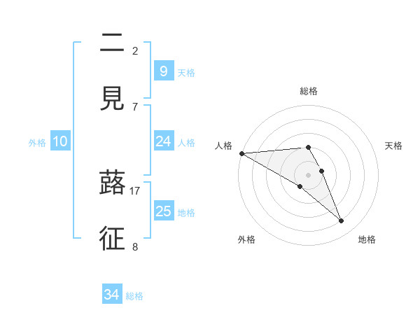 二見 蕗征さんの総格は34画の2点!
