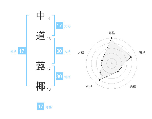 中道 蕗椰さんの外格は17画の4点!