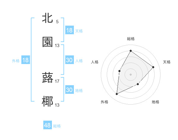 北園 蕗椰さんを姓名の画数から五運を鑑定
