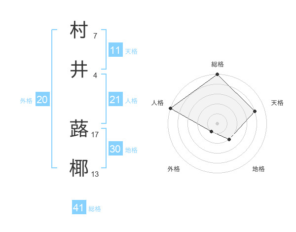 村井 蕗椰さんの総格は41画の5点!