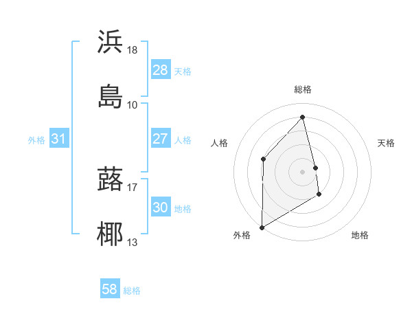 浜島 蕗椰さんを姓名の画数から五運を鑑定