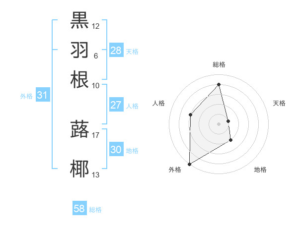 黒羽根 蕗椰さんを姓名の画数から五運を鑑定