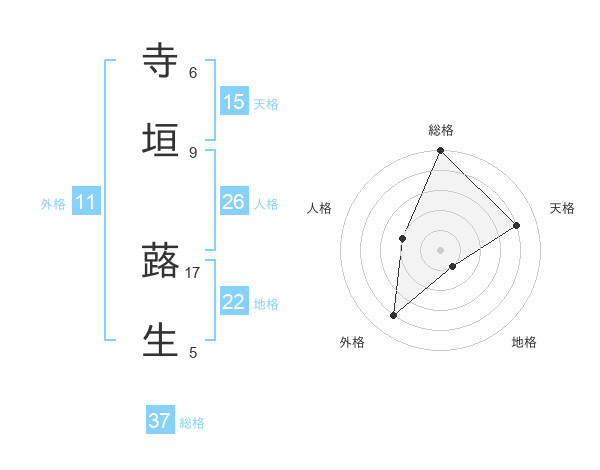寺垣 蕗生さんの総格は37画の5点!