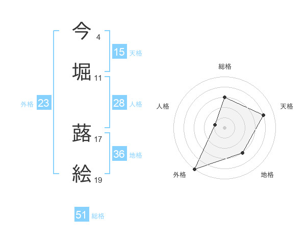 今堀 蕗絵さんの総格は51画の3点!