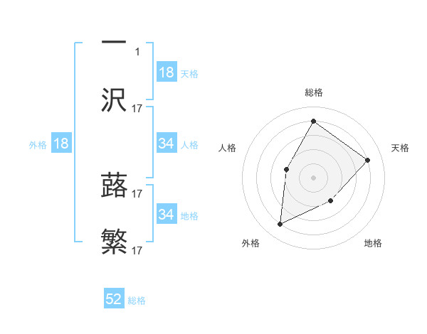 一沢 蕗繁さんの総格は52画の4点!