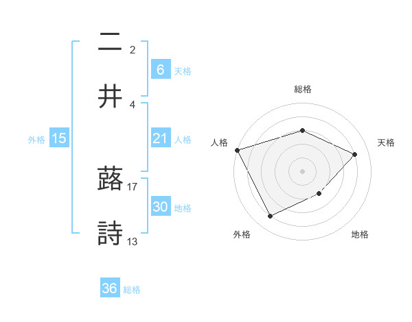 二井 蕗詩さんを姓名の画数から五運を鑑定