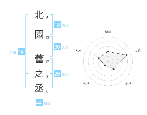 北園 蕾之丞さんを姓名の画数から五運を鑑定