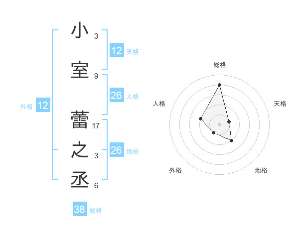 小室 蕾之丞さんの外格は12画の1点!