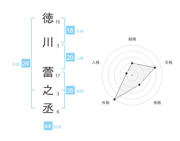 徳川 蕾之丞さんの総格は44画の2点!