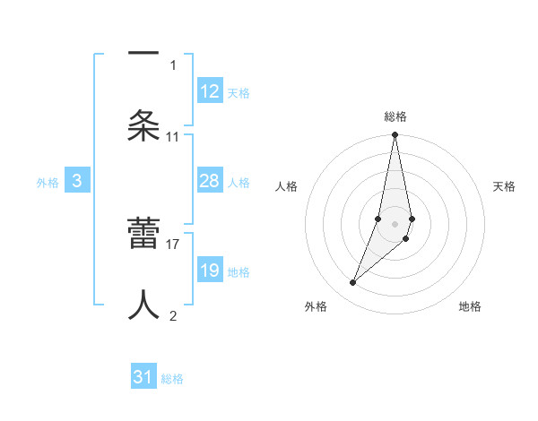 一条 蕾人さんの総格は31画の5点!