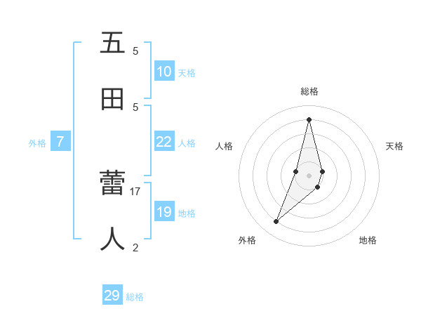 五田 蕾人さんを姓名の画数から五運を鑑定