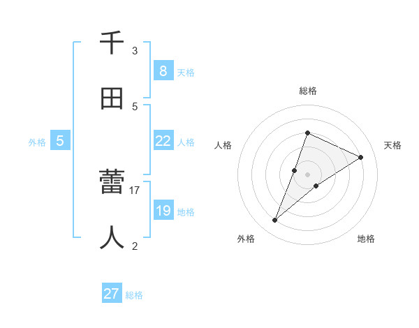 千田 蕾人さんを姓名の画数から五運を鑑定