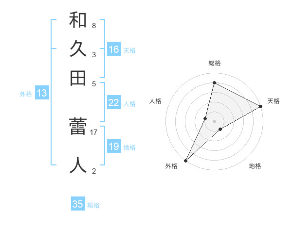 和久田 蕾人さんを姓名の画数から五運を鑑定