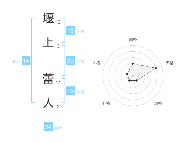 堰上 蕾人さんを姓名の画数から五運を鑑定