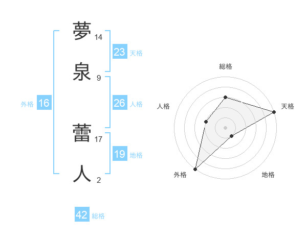 夢泉 蕾人さんの総格は42画の3点!