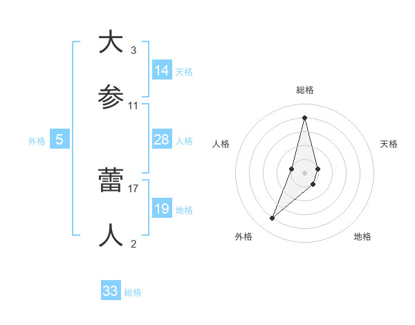 大参 蕾人さんの総格は33画の4点!