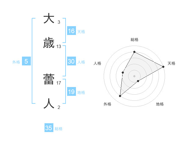 大歳 蕾人さんを姓名の画数から五運を鑑定