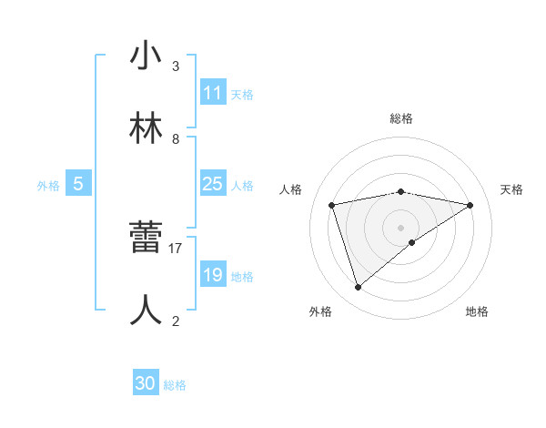 小林 蕾人さんの天格は11画の4点!