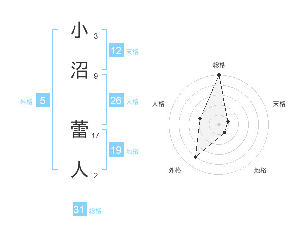 小沼 蕾人さんを姓名の画数から五運を鑑定