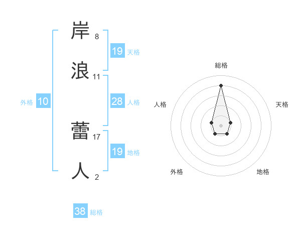 岸浪 蕾人さんを姓名の画数から五運を鑑定