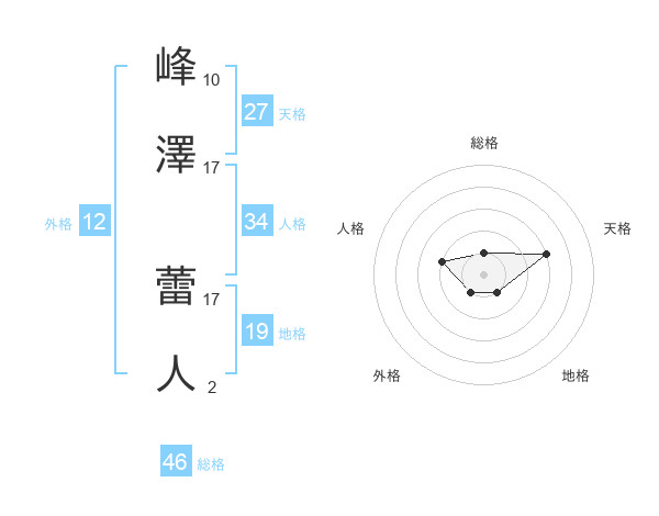 峰澤 蕾人さんを姓名の画数から五運を鑑定