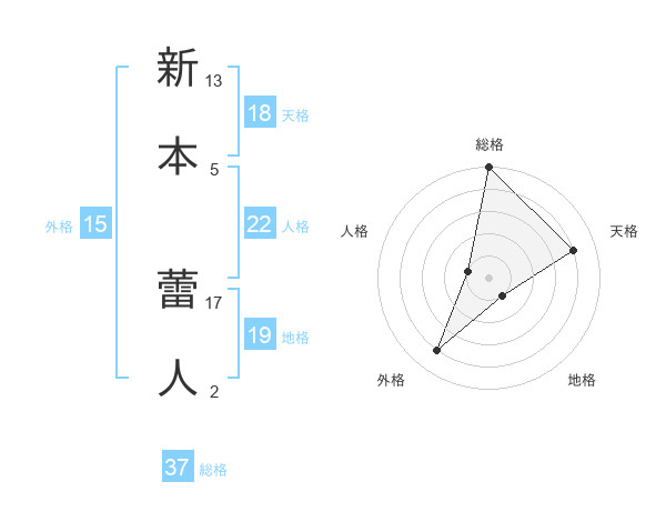 新本 蕾人さんの総格は37画の5点!