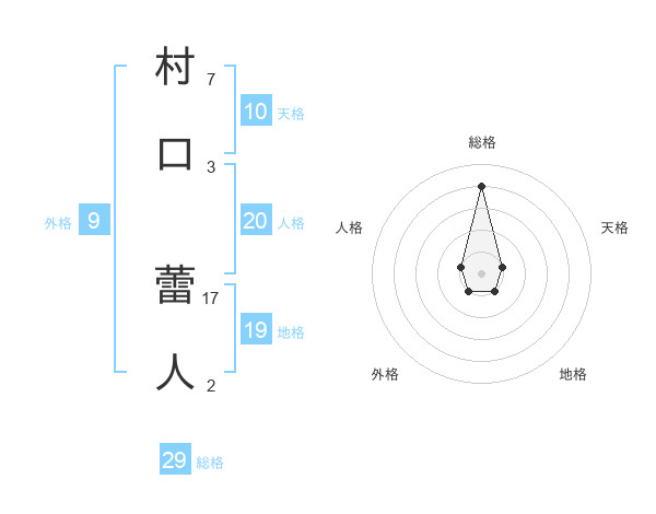 村口 蕾人さんの総格は29画の4点!