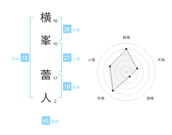 横峯 蕾人さんの総格は45画の4点!