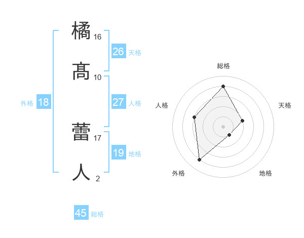 橘髙 蕾人さんを姓名の画数から五運を鑑定