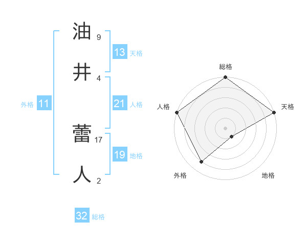 油井 蕾人さんを姓名の画数から五運を鑑定