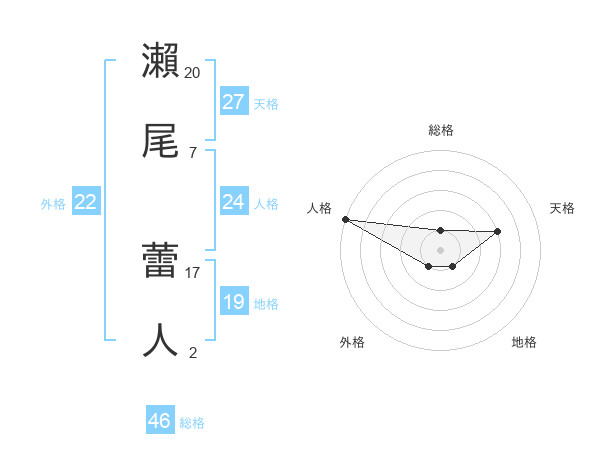 瀨尾 蕾人さんの総格は46画の1点!