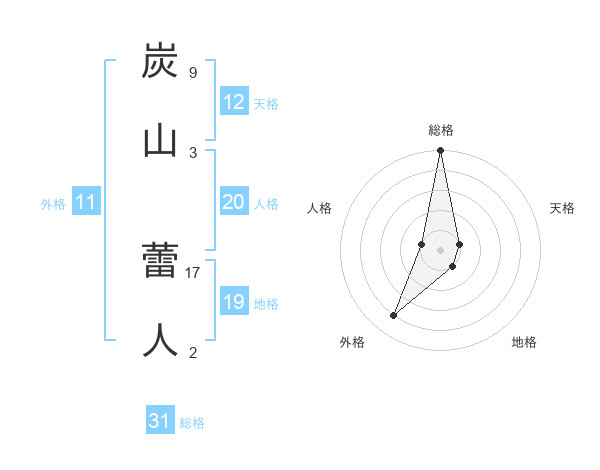 炭山 蕾人さんの総格は31画の5点!