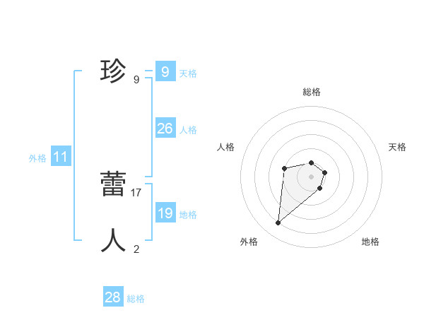 珍 蕾人さんの総格は28画の1点!