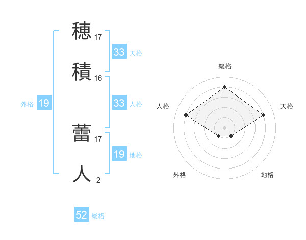 穂積 蕾人さんの天格は33画の4点!