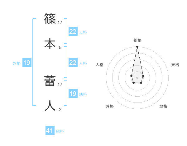 篠本 蕾人さんの総格は41画の5点!