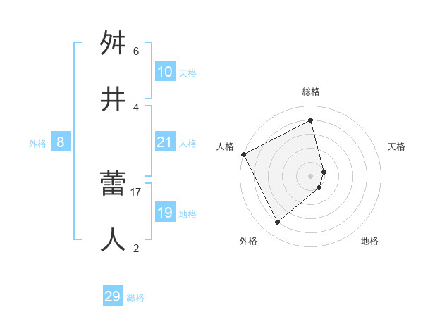 舛井 蕾人さんの総格は29画の4点!