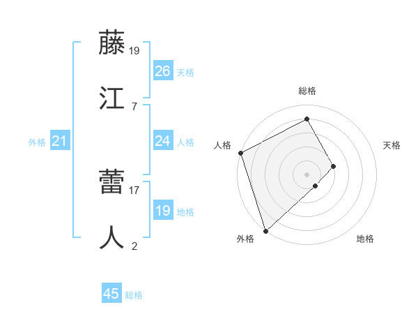 藤江 蕾人さんの総格は45画の4点!