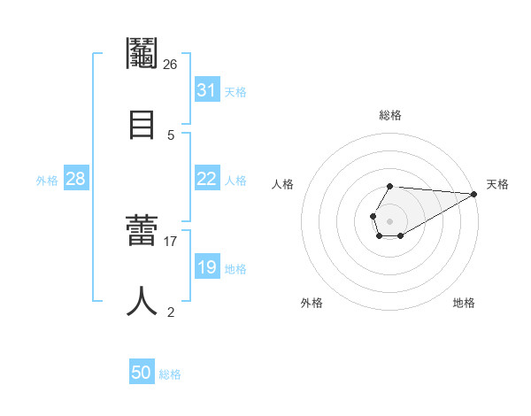 鬮目 蕾人さんの天格は31画の5点!