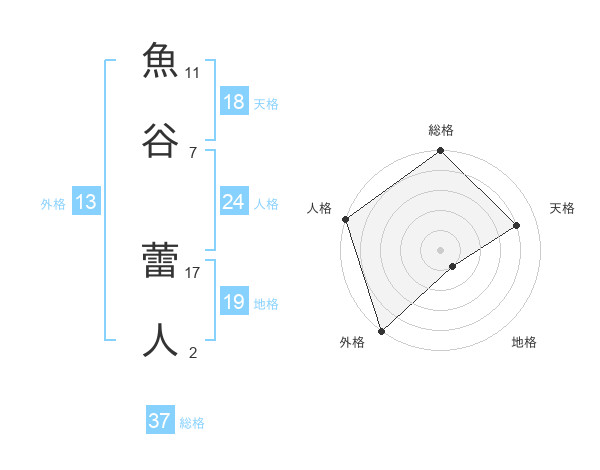 魚谷 蕾人さんの総格は37画の5点!