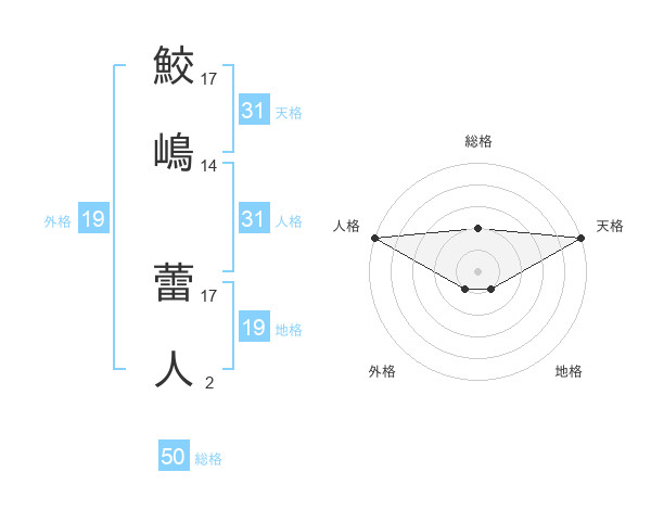 鮫嶋 蕾人さんを姓名の画数から五運を鑑定