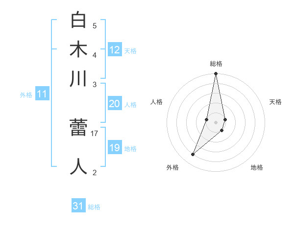 白木川 蕾人さんを姓名の画数から五運を鑑定