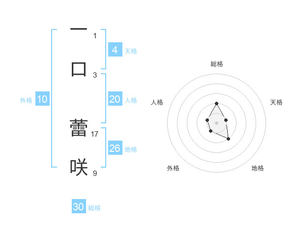 一口 蕾咲さんを姓名の画数から五運を鑑定