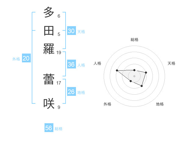 多田羅 蕾咲さんを姓名の画数から五運を鑑定