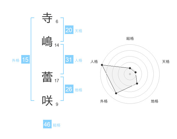 寺嶋 蕾咲さんを姓名の画数から五運を鑑定