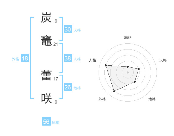 炭竈 蕾咲さんを姓名の画数から五運を鑑定