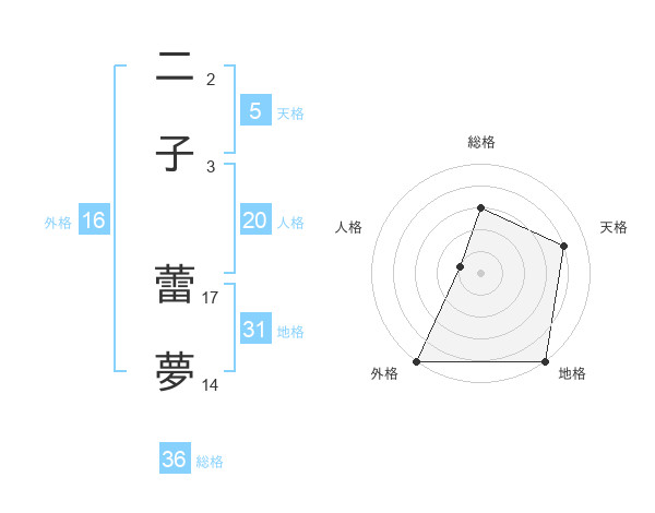 二子 蕾夢さんの天格は5画の4点!