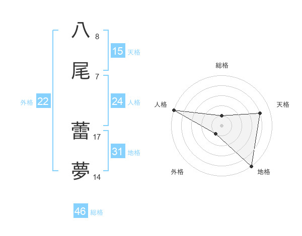 八尾 蕾夢さんの総格は46画の1点!