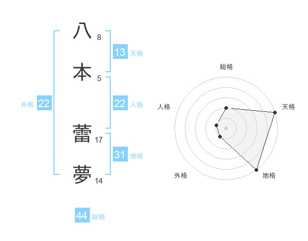 八本 蕾夢さんの総格は44画の2点!