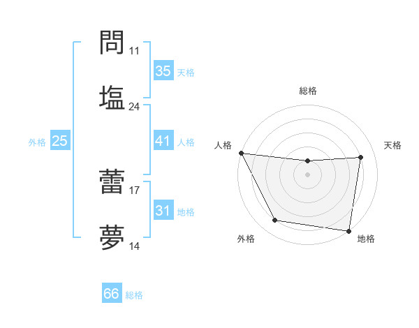 問塩 蕾夢さんを姓名の画数から五運を鑑定