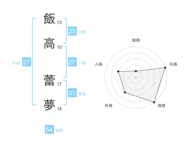 飯高 蕾夢さんの総格は54画の1点!